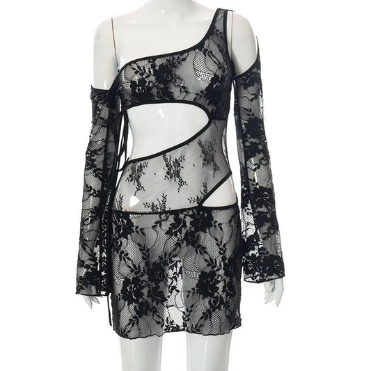 Fashion Lace Nightwear One Shoulder Long Sleeve