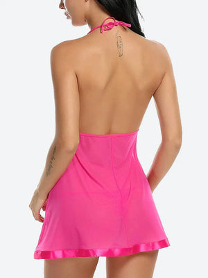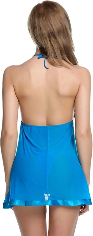 Enhance your nightwear collection with this stunning Black , Red , Pink , Blue , Nevy Blue Lace Sheer Babydoll Lingerie, designed to make you feel irresistible. The delicate lace cups and halter neck design add a touch of sophistication, while the sheer fabric drapes gracefully over your body for a tantalizing effect. A satin ribbon under the bust accentuates your curves, adding a touch of elegance to this sultry piece. Whether for a romantic evening or as a luxurious addition to your sleepwear, this babydoll offers both comfort and allure, making every night special.