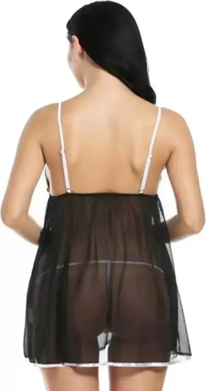 Description: Indulge in the elegance of this Sexy Black and White Sheer Babydoll Nightwear, designed to bring out your inner confidence and charm. Made from soft, transparent fabric, this babydoll drapes beautifully over your figure, offering a glimpse of what lies beneath while maintaining a sense of mystery. The delicate white trim and ribbon accent add a touch of sophistication to this sultry design. Ideal for romantic evenings or as a luxurious gift, this nightwear will make you feel effortlessly sexy and comfortable.