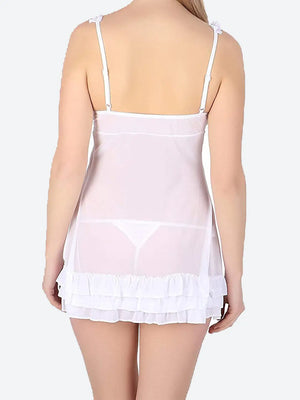 Add a touch of elegance and charm to your intimate wardrobe with this exquisite lingerie set, available in both pink and white. Designed to make you feel confident and alluring, this babydoll sleepwear features delicate lace trimming along the neckline and straps, beautifully enhancing your natural curves. The front is adorned with a playful bowknot, and the ruffled hem adds a romantic flair to the overall design. Crafted from soft, breathable fabric, this set ensures a comfortable fit, perfect for intimate evenings or as a thoughtful gift for someone special.