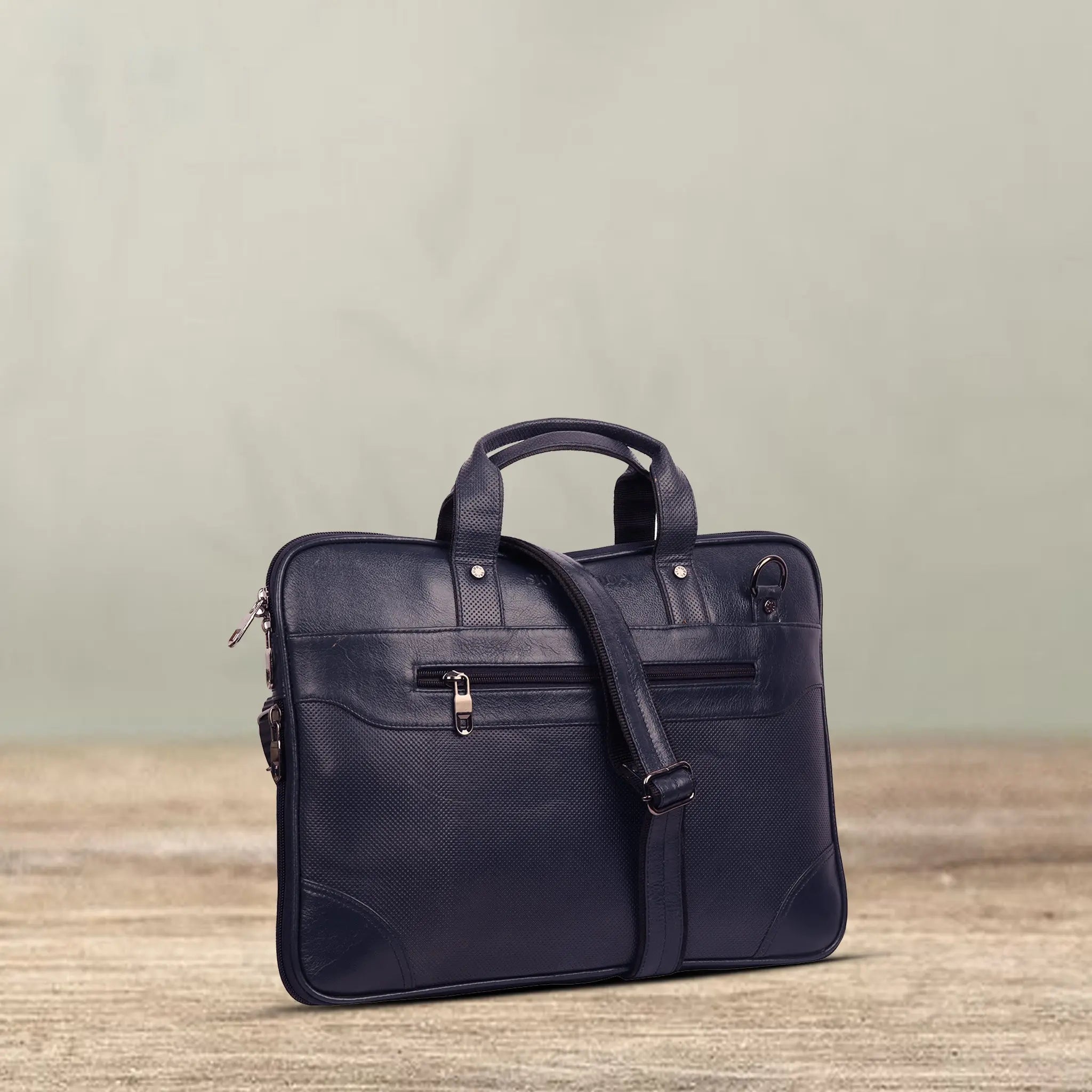 LuxuriesBliss premium leather messenger bag for men & women. Fits 14–16 inch laptops, with 7 pockets, adjustable strap, and trolley sleeve. Stylish & professional – perfect for office, travel, or business use.
