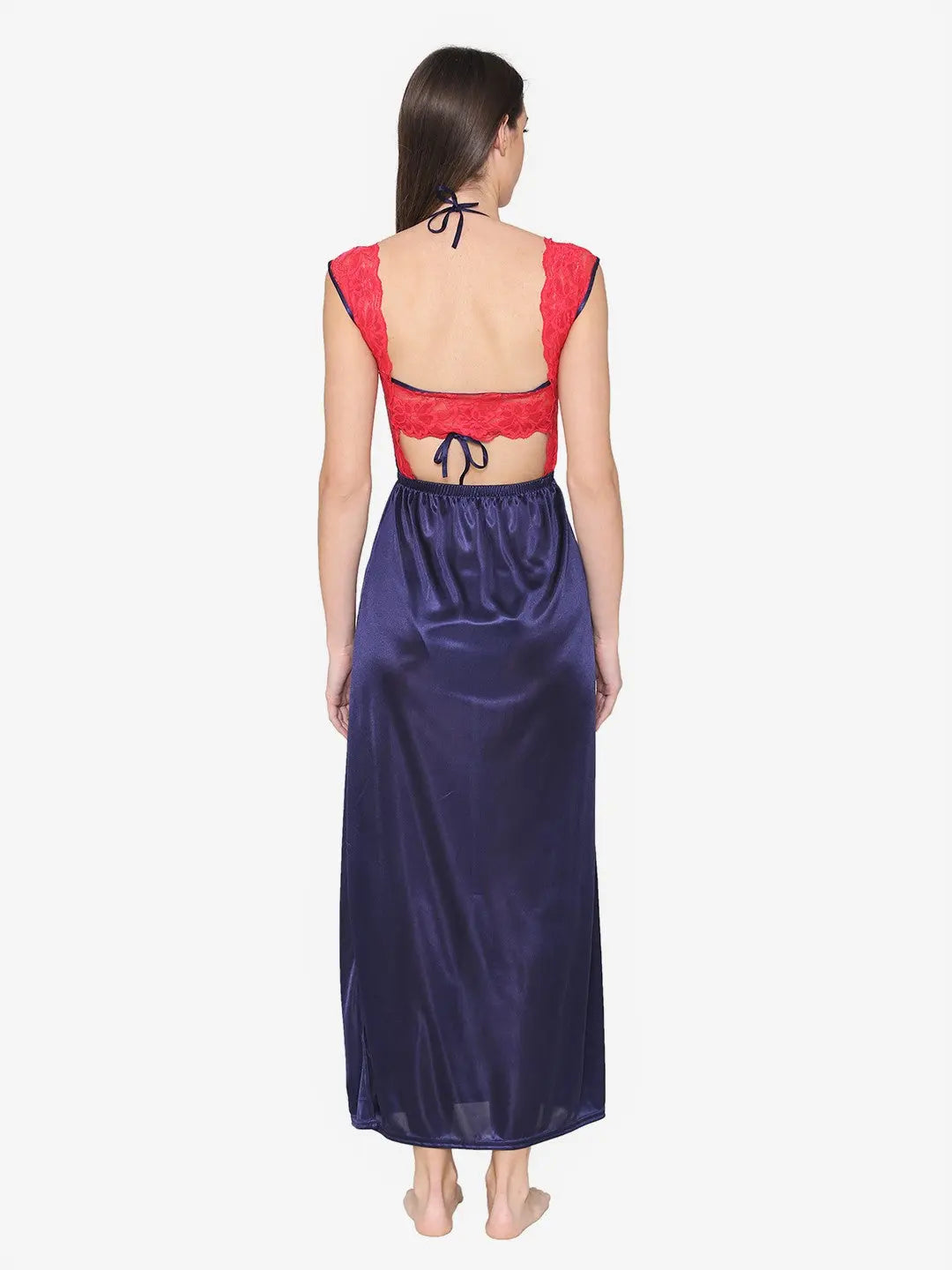 This luxurious Satin Nightwear Set for Women 8-Piece set is crafted from premium maroon satin, offering a smooth and silky feel against the skin. The set includes a long robe with lace-trimmed sleeves, a sleeveless camisole with matching pants, a short nightgown with delicate lace details, a matching bikini set, and a soft eye mask for a complete sleepwear ensemble. Perfect for adding a touch of elegance and comfort to your nighttime routine. Ideal for gifting or self-indulgence..