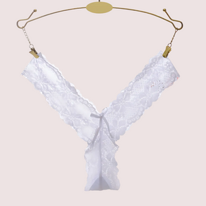 Embrace allure with the Sexy Lace G-String Mini Underwear. This g-string features intricate lace detailing for a seductive, barely-there look. Designed for minimal coverage and maximum impact, it adds a touch of elegance and sensuality to your lingerie collection.